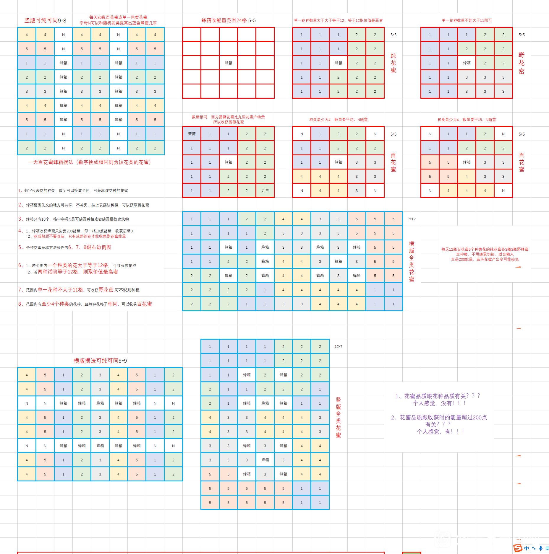 8、範圍內有至少4個種類的花種,且每種花格子相同.可以收獲百花蜜。