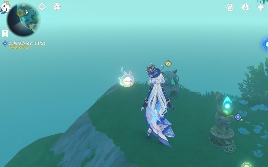 第一個仙像:前往浮錦左側的區域(小地圖南邊),發綠光的仙像底座旁邊水面上有一只仙靈,仙靈旁邊的水面上會有一些快速移動的泡泡,調查泡泡,然後跟隨仙靈,繼續調查泡泡,擊敗兩只水形螃蟹。將仙靈送回仙靈座。