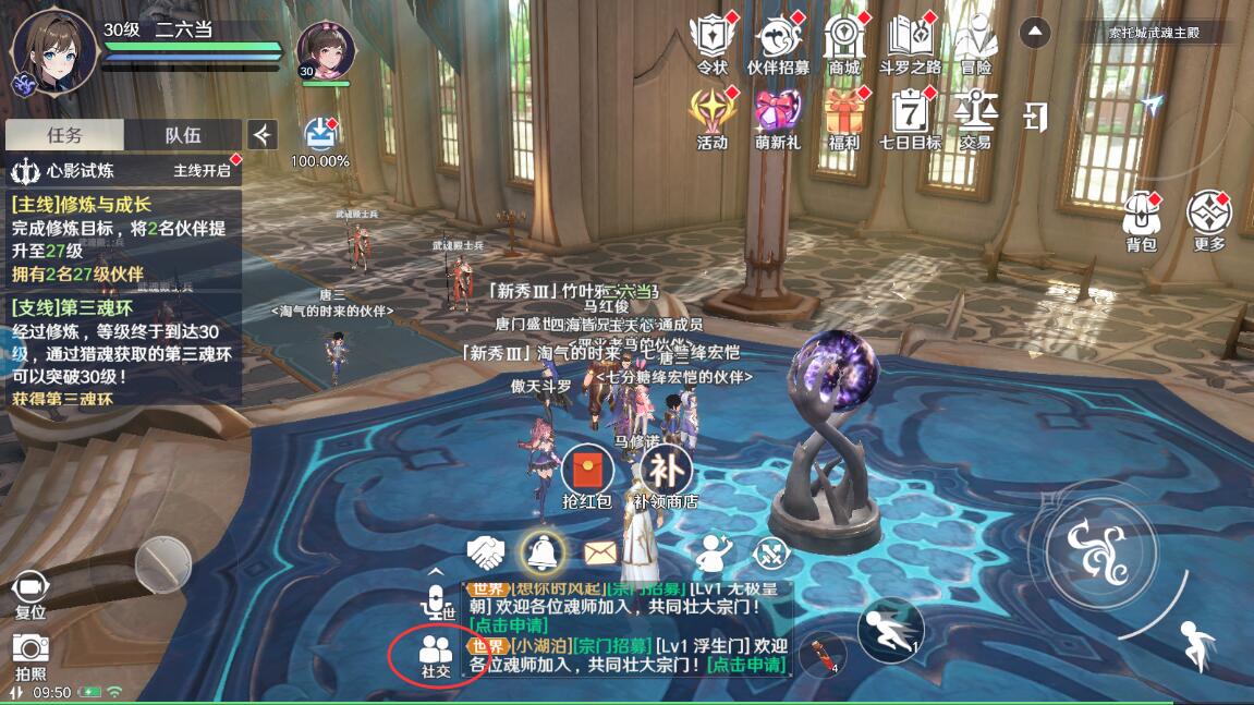 1、在鬥羅大陸史萊克學院遊戲主界面點擊下方的“社交”圖標