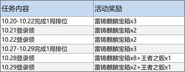 有時間參與一局排位賽可以獲得更多的寶箱。具體的任務內容與活動獎勵如下圖所示: