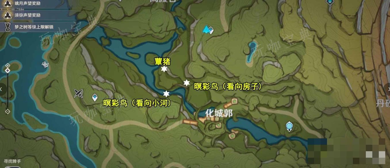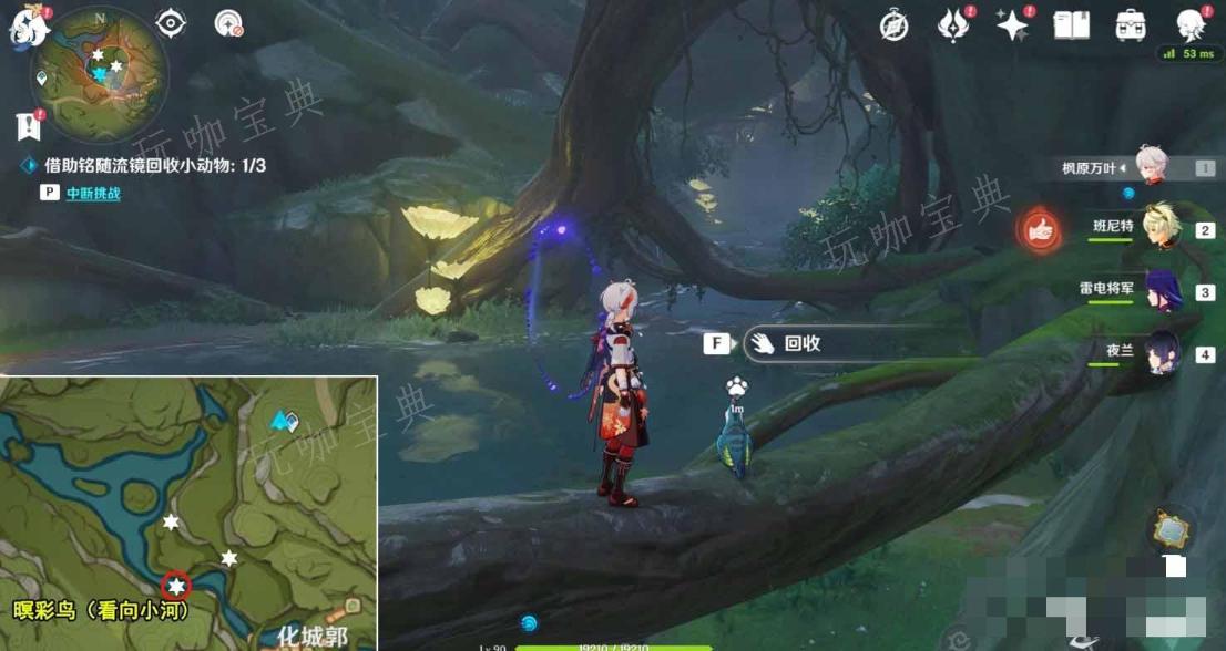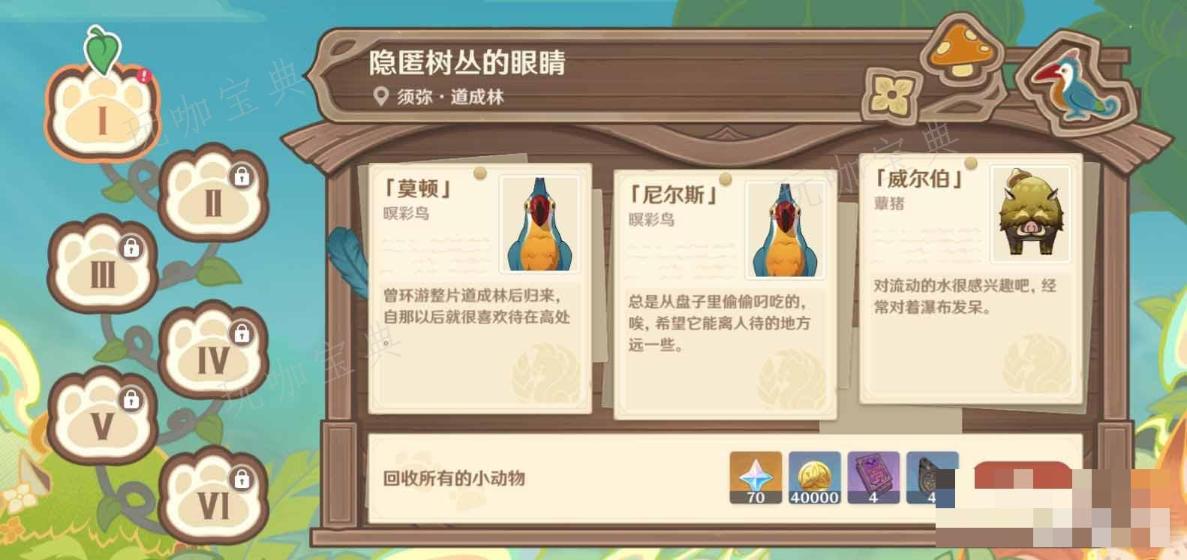 裝備上「銘隨流鏡」,開啓獲得小動物視角,獲得視角後,小動物才會出現,三只動物的回收順序隨機但位置固定,按照「銘隨流鏡」指示的順序收集即可
