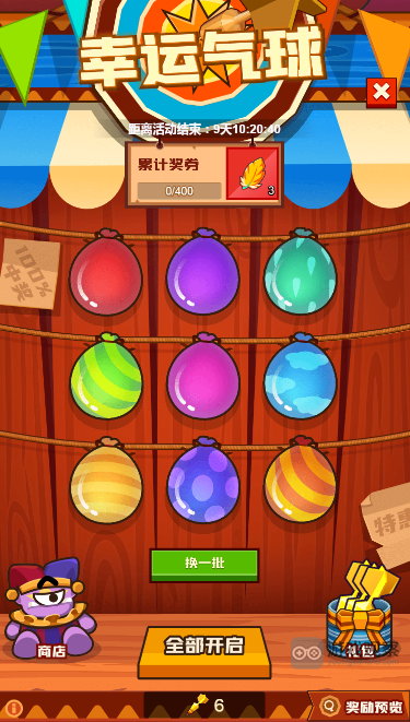 飛镖奪寶是這次慶典的核心活動了,其實形式上和之前的慶典活動差不多,通過消耗飛镖紮氣球獲得隨機獎勵,還有金色羽毛、紅色大型水晶等累計獎勵,附帶的【地堡救援】也是獲得飛镖的主要途徑。
