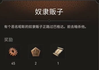 《刺客信條:幻景》奴隸販子,合約-奴隸販子-羅斯坦之劍升級設計圖,下面就爲大家帶來玩家愛玩遊戲的小透明