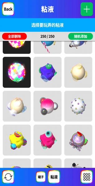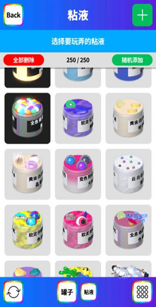 4、可以在遊戲中選擇自己喜歡的顔色素材,添加各種閃粉或泡沫等東西,制作專屬史萊姆。