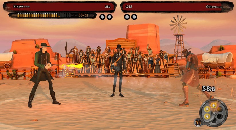 西部槍手對決遊戲是一款以美國狂野西部爲背景的沉浸式射擊競技遊戲,將玩家帶入一個充滿牛仔風情、黃金熱浪與生死較量的世界,遊戲中,玩家化身爲英勇無畏的槍手,身披風塵仆仆的鬥篷,手持傳奇左輪,穿梭于廣袤的沙漠、繁華的小鎮和險象環生的峽谷,在這裏,榮譽、財富與生存交織,每一次扳機的扣動都決定著命運的走向,你將參與激烈的1v1決鬥、團隊奪寶戰等多種模式,與全球玩家展開智勇對決。