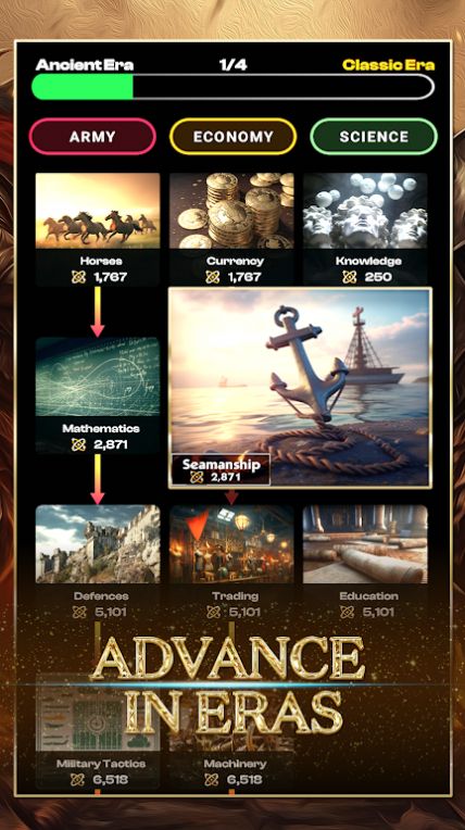 1. 遊戲覆蓋軍事、經濟、文化等多個領域,玩家可以通過研發科技來推動帝國的崛起。