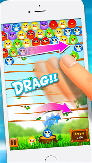 1、【輕松消除】操作小鳥發射小球,當三個及以上相同顔色的小球連在一起時就會被消除;