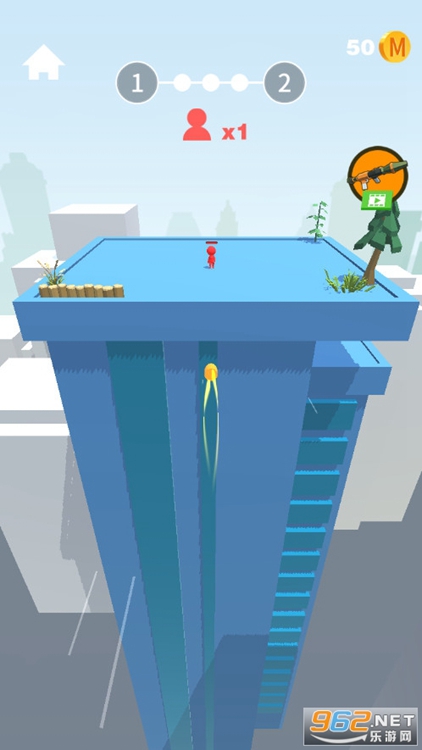 當玩家在一個屋頂上准備,另一邊也有一個屋頂,上面有很多敵人。