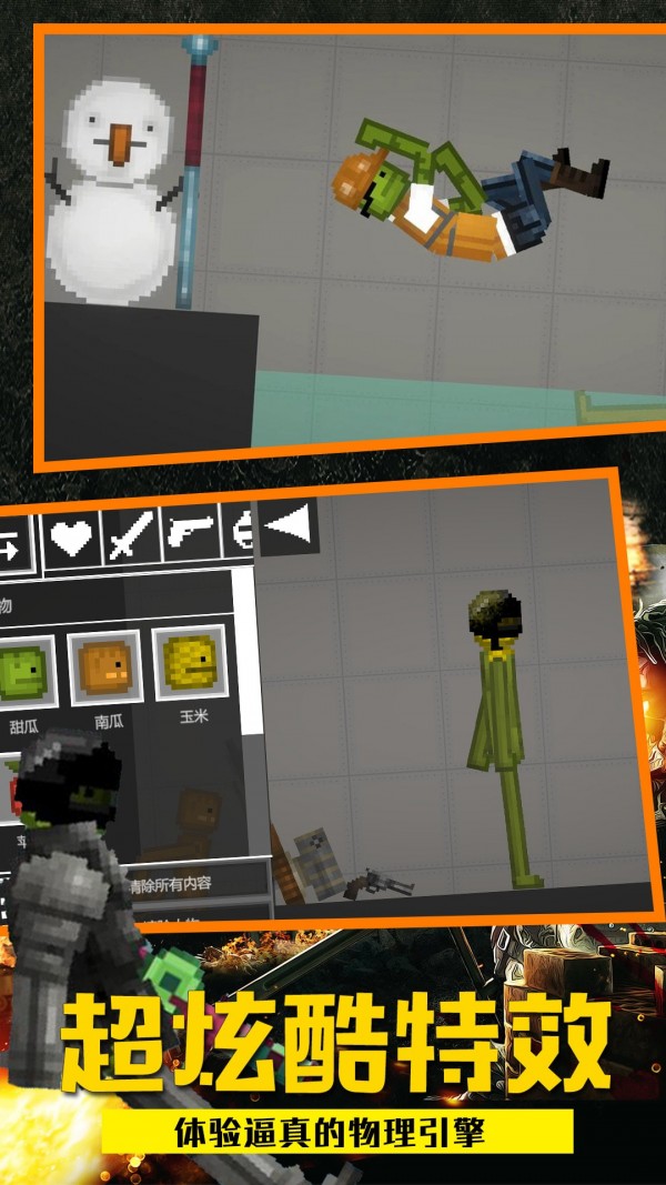 人類西瓜遊樂場,大型多人沙盒遊樂場冒險遊戲,在遊戲裏玩家加入這個沙盒遊樂場,開啓你的道具,激戰甜瓜人,更多的汽車載具使用,毫無限制。