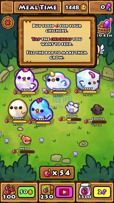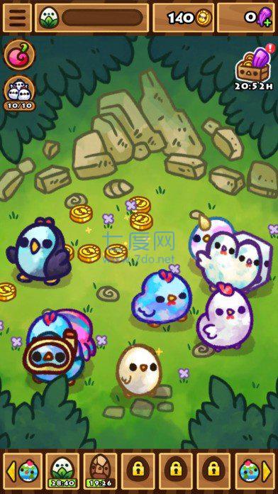 用戶在遊戲裏面要通過不斷的點擊小雞來獲得經驗值,當你屏幕上方的經驗槽滿了之後,就能得到一顆全新的“雞蛋”,在經過一段時間的等待,就可以孵化出全新種類的小雞了。而本作的玩法大體上就是這麽個流程,是不是覺得很簡單無腦呢。新誕生的小雞都會被保存到圖鑒中,在遊戲裏玩家可以隨時進行查看,形成了一種收集的樂趣。