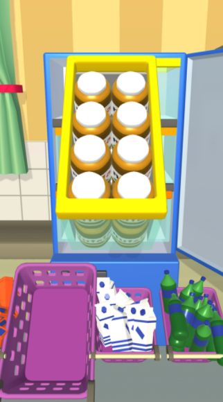 1、各種物品會一直開啓,等你來挑戰,完成冰箱裏的收納,放到合適的位置完成任務。