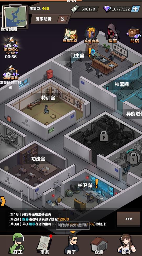 5、在公司專門的訓練室裏,你可以不斷增加這些神級保安屬性技能,變得更強