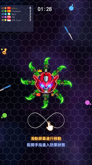 5、這是靠武器數玩的,當然也有技能,速度和體積,碰到比自己大的不要怕,手指停下,自動防禦,防禦就是最好的進攻。