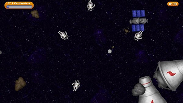 比如在第一小關,碰到太陽和類木行星會被吞掉,碰到飛碟或者被它打中會損失大小。