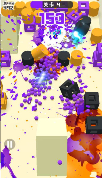 需要進行收集油漆的球進行與其他的顔色進行彈球,