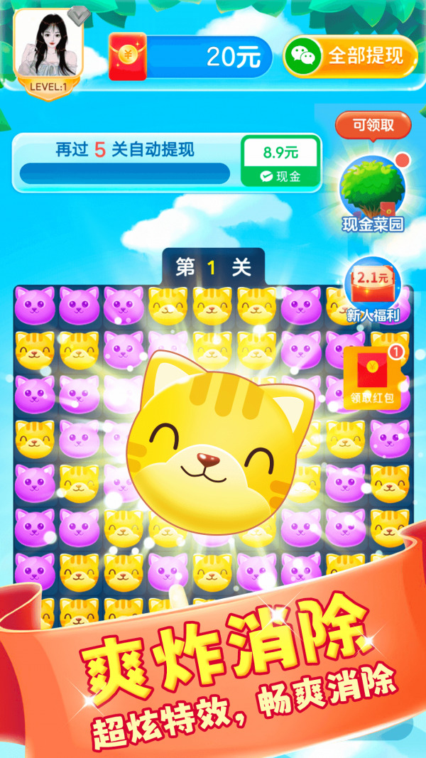 喵喵消消樂作爲一款全新消除主題的休閑賺錢手遊,喵喵消消樂遊戲升級上線海量創意有趣的三消關卡,消除道具十分魔幻強力,在遊戲裏玩家可以自由體驗,開啓更多喵喵消消樂遊戲福利關卡。