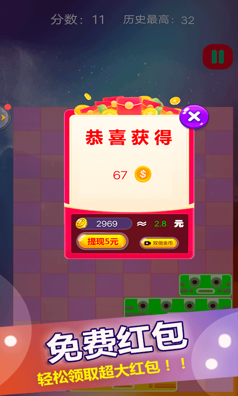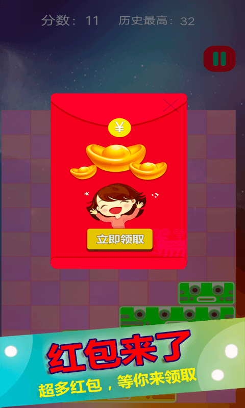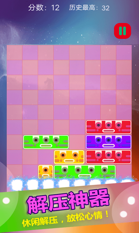 方塊拼圖玩法十分簡單,就是通過滑動小方塊填滿整行,整行消除。但是要知道的是,消除是跟顔色是沒有關系的哦,也不限定只能從最上層開始移動,每一層都可以動。滑動主界面下面會有即將出現的方塊分布提示,如果一直不能讓方塊自然掉落或者通過滑動而達成整行消除,方塊層數就會不停-不停增多,關卡越高,一次滑動出現的方塊層就越多,所以越到後面其實越難玩。