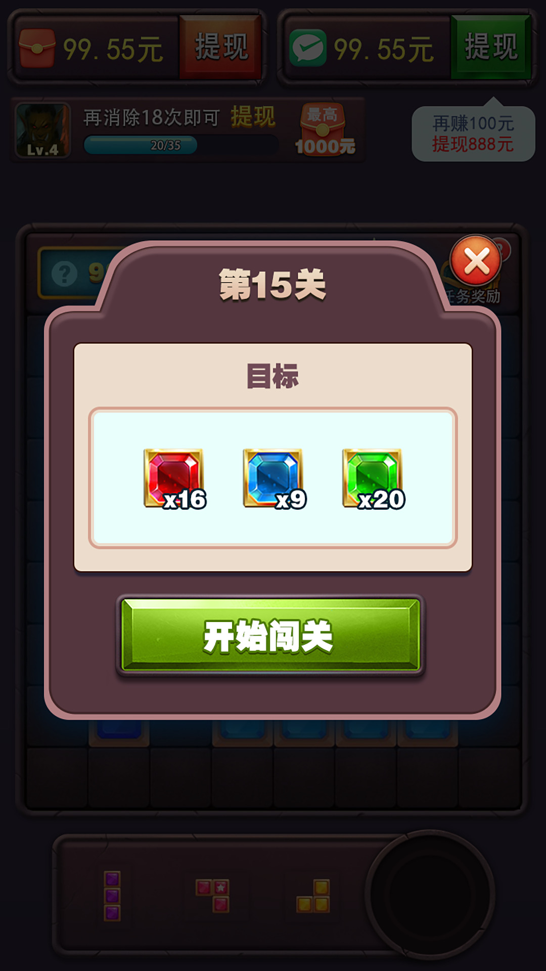 2、方塊樂翻天擁有豐富多樣的關卡設計,每個關卡都有不同的挑戰和難度。在遊戲裏玩家需要在限定的步數或時間內完成特定目標,如消除特定數量的方塊或達到一定的分數。