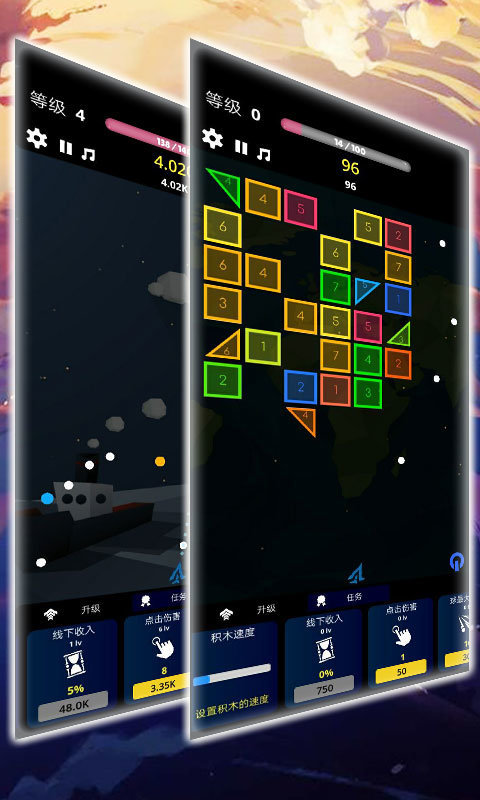 遊戲簡單操作,只需按住屏幕,選擇瞄准路線,計算反彈路線,放手發射彈球,力求讓圓球在方塊之間盡可能多的反彈,盡快的消除掉屏幕中出現的方塊。遊戲界面超華麗,視覺效果超酷炫,遊戲音樂超帶感,一玩就停不下來。