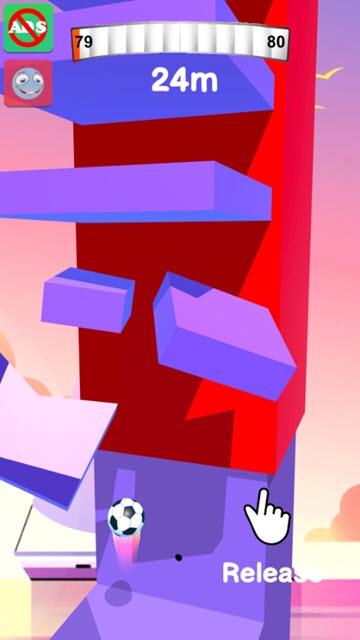遊戲屏幕使用簡單的頁面效果。輕松單擊屏幕上的按鈕,以使球連續沖刺或掉落以打破途中的障礙;