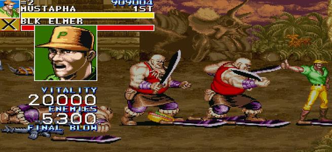 遊戲的原型是CAPCOM著名的橫向清版動作遊戲凱迪拉克與恐龍(Cadillacs and Dinosaurs)。與降龍不一樣的是,97恐龍快打2代修改的不是人物招式,而是更加複雜的遊戲內容。 追求遊戲的華麗程度以及引入原作沒有的要素是這些HACK版遊戲的共同之處。這麽做雖然能夠吸引更多的玩家來“投幣”,但是遊戲完美的平衡度也被隨之打破了。在HACK技術上,97恐龍快打2代要比降龍時代先進了不少,一些原來無法完成的工作如今也可以輕松實現了。從可玩性角度來說,本作還是有自身的獨到之處。