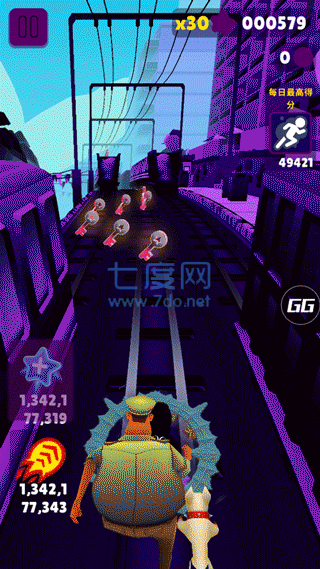 點擊商店裏的強化,購買“得分加成”後在遊戲裏面使用,可在短時間內提升倍數。