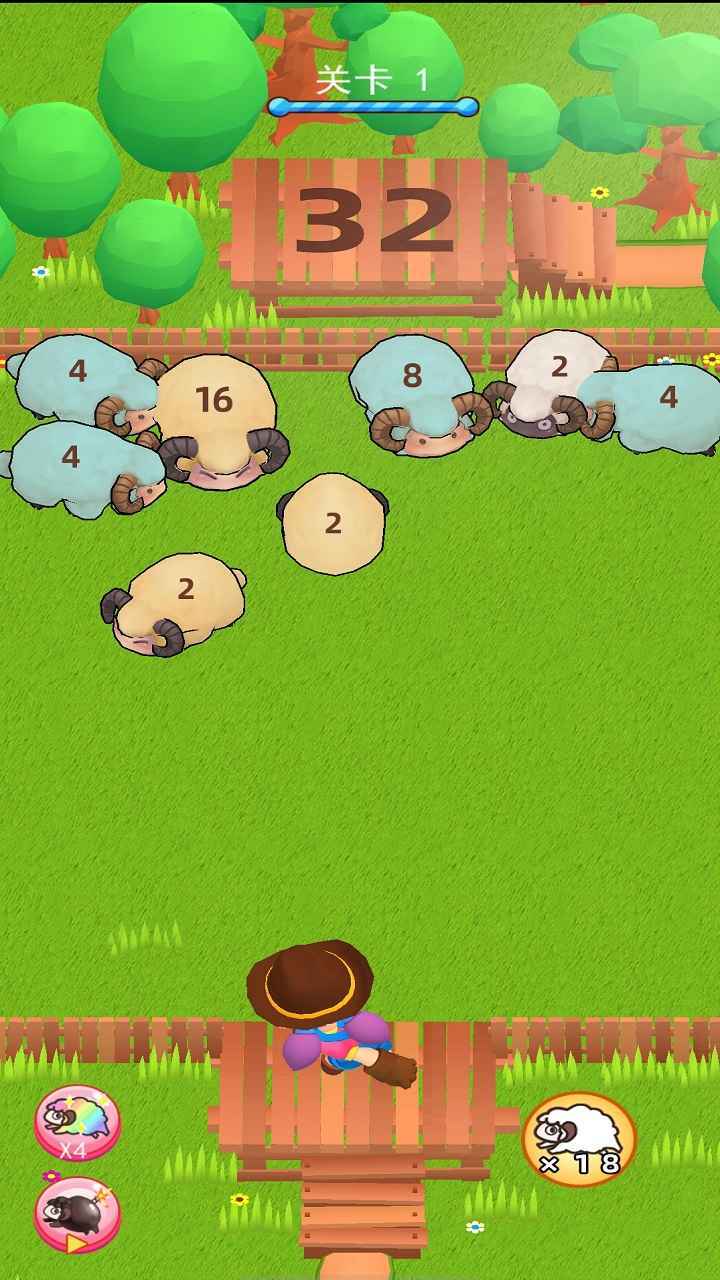 羊和羊會在物理碰撞下合成新的羊和羊,滿足關卡要求後過關;