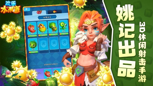 歡樂水果派是上海愉趣網絡科技有限公司推出的一款以主打3D休閑射擊的放置解壓遊戲,在遊戲裏面用戶將穿越到水果派的世界之中,化身爲一名海島島主,收集金幣、招募獵手、培養水果戰士,抵禦入侵的海妖,保衛我們的果園,在歡樂水果派的世界之中你可以體驗到無盡的燃爆射擊玩法,可以體驗到極具策略與趣味性的“四消五連”休閑玩法,更有劇情副本探險和佛系種植園養成玩法等你體驗,動動手指就能體驗到解壓、消除、射擊、休閑等多種遊戲樂趣,還不快來下載歡樂水果派開啓專屬于你的獵妖之旅吧!