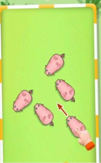 用戶需要通過點擊小豬將它們引導進入豬圈,消除相同顔色的小豬,完成關卡任務。