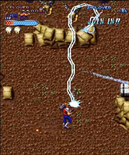遊戲一共有4種火力 微沖、火焰噴射器、激光、火箭彈。相同的火力重複吃可以升級火力等級。這一點經常玩街機遊戲的朋友們並不陌生。畫面制作精美,遊戲操作性好。BGM也很優秀。單打雙打都會讓玩家體驗一場酣暢淋漓的盛宴。
