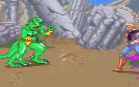野獸形態可以維持一段時間,直到受到的傷害達到一定程度後,才會變回人類形態。討厭的是,即使你沒有被敵人打中,也會不停地減血(這貌似是Konami清版遊戲的一個慣例,在Crime of Fighters中也是如此)。不過當你快要死去時,Konami還是幽默了一把,屏幕上居然會出現一句警告你“快要挂了”的閃動信息。