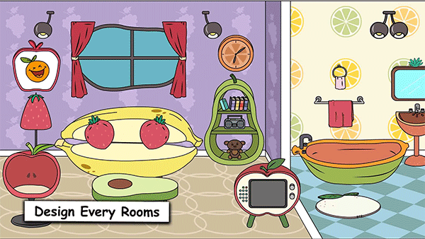 3、卡通風格專爲兒童設計,讓你的家更漂亮,整理你的房間,還可以開啓不同的家具。