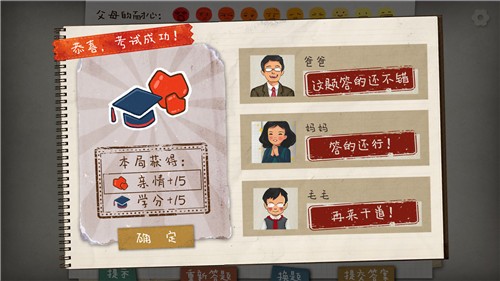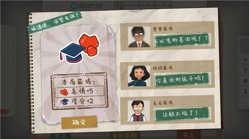 1)親情影響:用戶解題過程中需要注意父母的耐心值,耐心值下降會影響親情關系,增加遊戲的策略性和決策難度。