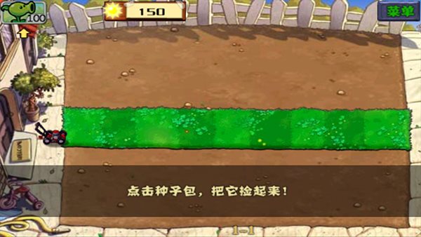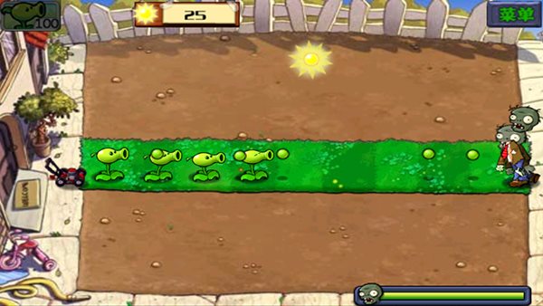3、可以看到左上角有豌豆射手和太陽,第一關的一個太陽是25的能量,需要4個太陽即可種植一個豌豆