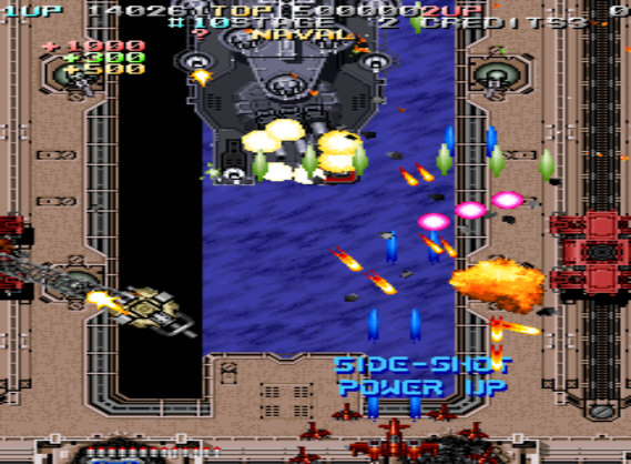 戰鬥翔鷹本作被認爲是假1945二代,本作的音響效果張力十足,背景制 作精良,畫工一流;可惜總體色系偏暗 ,屏幕出現的升級用物件看不清楚,前 景背景容易搞混。當然你看靜止圖片時 是很清楚的,但一旦進入遊戲,可就沒 時間這麽仔細的看了。 操作方面可以,主機的火力很強, 打起來很過瘾,不過跟《戰斧》一樣, 總的關數很少,沒打幾關就到關底了。