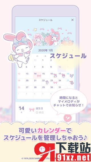 mymelody作爲一款感受快樂與療愈的休閑益智遊戲,讓你與可愛的角色My Melody一起玩耍,享受輕松愉快的遊戲時光。作爲本款遊戲的主角,My Melody及其伴侶Sanrio Character將帶給你一系列令人驚喜和愉悅的體驗。無論你是喜歡兔子和可愛角色,還是期待和角色進行聊天、日程安排的用戶,都將滿足你的願望。總之,My Melody遊戲通過與My Melody的互動和玩耍,你將獲得放松和愉悅的體驗。在遊戲裏面的豐富功能將滿足你對可愛角色的喜愛,而實用的日程管理功能則提供了更加便捷的生活方式。讓My Melody帶給你不同尋常的遊戲樂趣,陪伴你度過美好的時光。