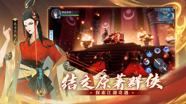 2、開放的場景設計,讓遊戲中所有可見的地方都可以到達,騎馬,或者操控燈光技能,free穿梭在竹林小道、亭台樓閣之間,暢遊江湖!在尊重和還原原著經典得銀幕上,融入了合理又扣人心弦的原著主線,注重對人性的敘事和刻畫,以不同的視角看待世界上發生的一切。伏威镖局覆滅、東方不敗之死,背後隱藏著一段不爲人知的故事。玩家更像是這個過程的參與者和見證者,一步步揭開江湖背後的真相。