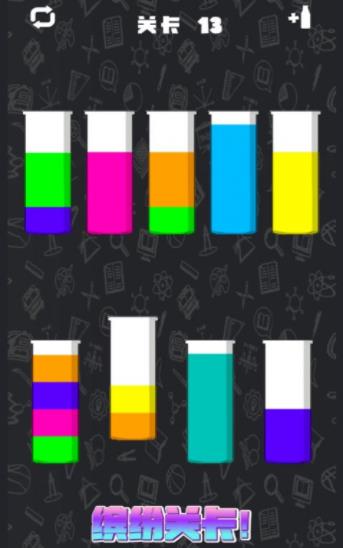 1、遊戲的難度不斷增加,顔色和瓶子也不斷增加!