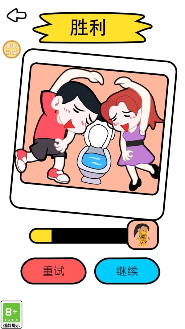 4、男孩和女孩順著線跑到廁所,遊戲就成功了。