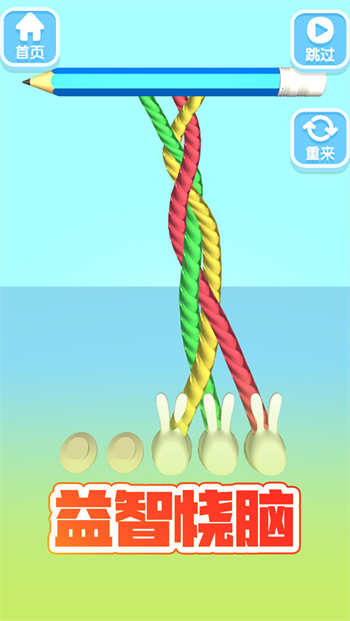 開心解繩子1.0.1下載安卓版這是一款令人愉快的益智遊戲。玩家可以通過解開各種繩索或對物品進行分類來完成關卡。遊戲提供了多種題型,采用easy易上手的操作方式,適合各個年齡段的玩家。解決問題的過程鍛煉了智力和操作能力,而暫停和保存功能則方便玩家按照自己的時間安排玩遊戲。總的來說,這款遊戲既有趣又富有挑戰性,既鍛煉了大腦,又提供了愉快的遊戲體驗。無論是閑暇時,還是解悶時,都是correct的選擇。