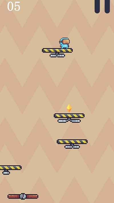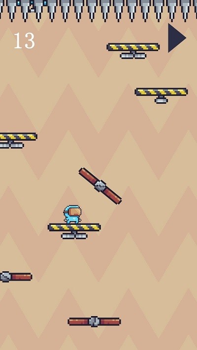 1、點擊屏幕控制移動,躲避障礙,生存更久,把握跳躍時機。平台的位子也是比較隨機的,每一個的跳躍都要保證自己下面還有平台接應著才行的。