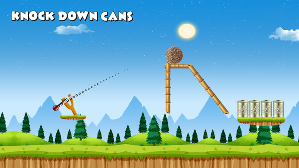 4、玩家可以直接射擊,拿起自己的球,玩家需要使用一個大彈弓來擊倒遠處的罐子!