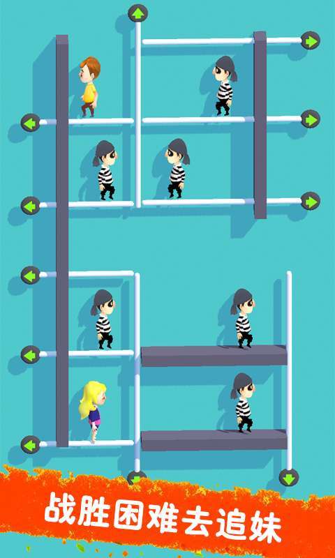 追妹高手遊戲擁有卡通動漫的畫風設計,精美細致的遊戲畫面,以休閑闖關爲遊戲主題,豐富有趣味性的遊戲心得,簡單易上手的操作方式,遊戲裏用戶扮演一名男孩你要通過重重關卡去拯救被困的小女孩,在拯救途中會有層層困難與危險,你只要救出小姐姐,她就會以身相許,加油吧!少年!