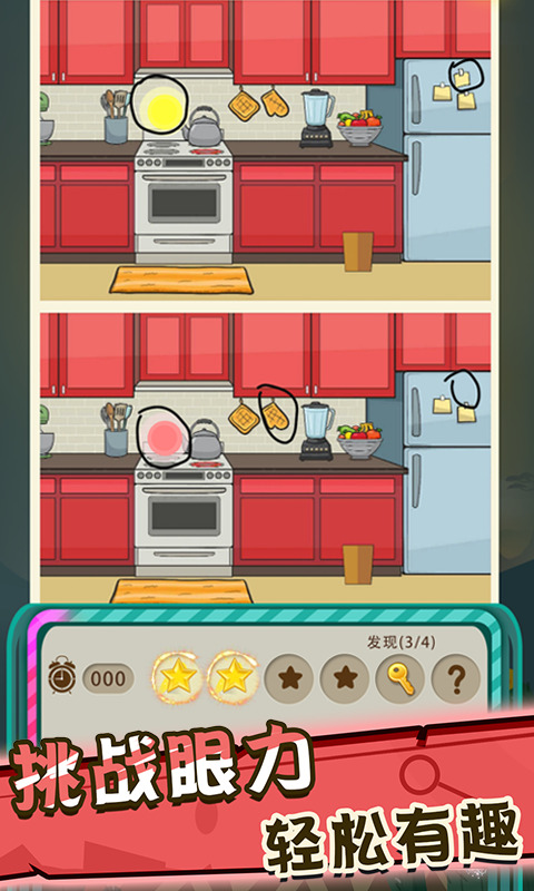 2、玩家將化身一名偵探,訓練你的眼力,找出兩張圖片的不同之處。