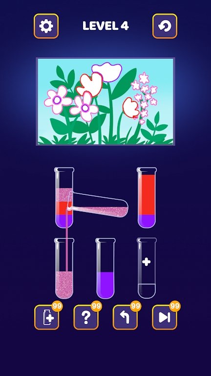 2、液體彩色水分類藝術中設有多個關卡和不同難度的挑戰,在遊戲裏玩家需要