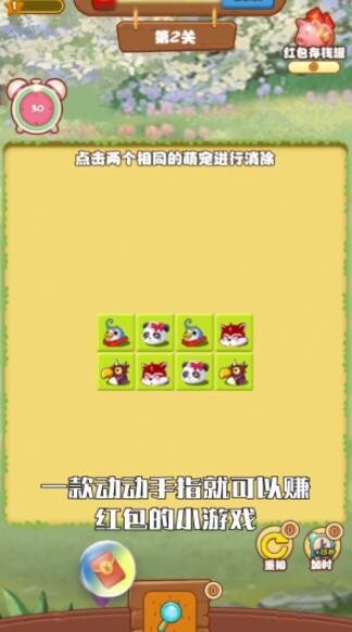 1、經典玩法,點擊兩只相同的小動物完成消除,消除後即可闖關。