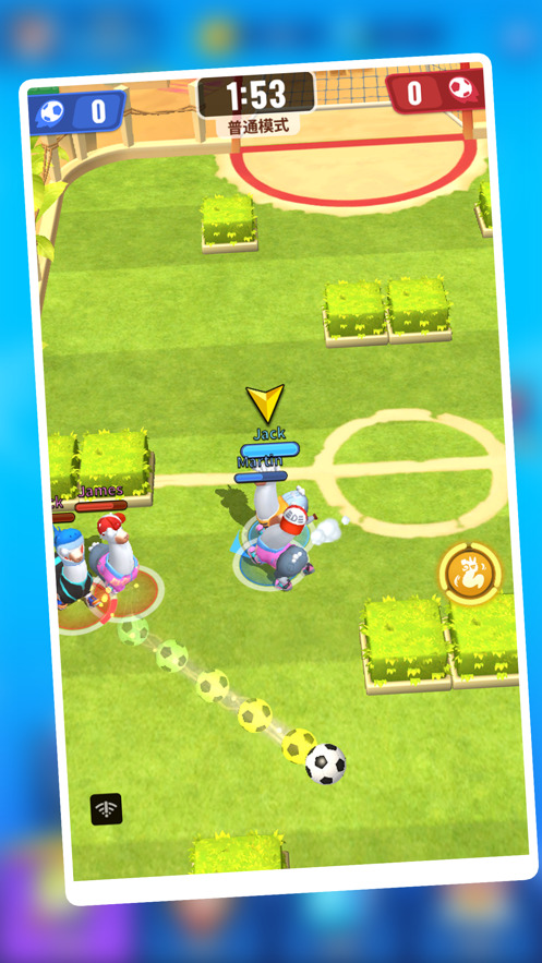 2、在競技時沒有人類足球的規則,你能用盡一切方法進球和阻礙對面進球。