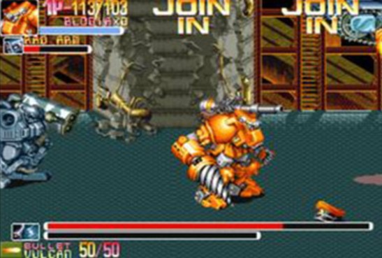 難得一見的以機器人爲主角的動作過關遊戲,當然機器人是由人類控制的,每個機器人都有自己的招數,敵方的BOSS也是各種能力各異的機器人,遊戲支持三人同時進行,也是一 個打得很過瘾的過關遊戲..