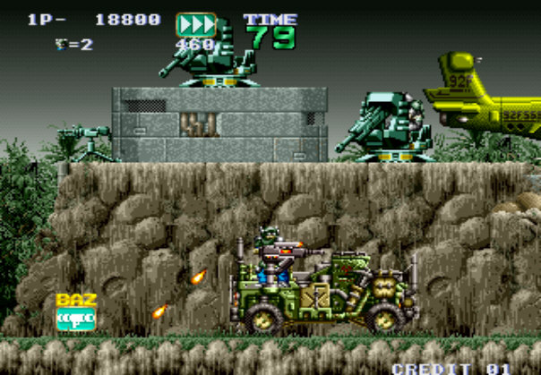 什麽遊戲風格類似“合金彈頭”,有資力的老玩家應該知道,恐怕只有“GUNFORCE”系列了,這個遊戲俗稱“戰魂”。IERM作品,這款遊戲據說把M90基板的特制發揮的淋漓盡致,是的,雖然IERM廠商已經倒閉,但是他的獨特的作品風格還是深深的印在了我們的腦海中,並非可以模仿“合金彈頭”的混亂風格,反過來還差不多,因爲IREM M90基板從誕生起他的作品就深深的印上了“混亂”的影子,這部作品一代就看出了IERM制作槍戰動作遊戲的造詣,雖然BOSS單調些,而且規律不算難找,但是遊戲的難度還是非常之大的,戰鬥激烈中不忘解救MM,主角在遊戲中上天入地,出生入死,無惡不做,無堅不摧.....