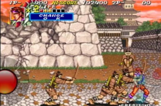 戰國傳承,SNK1991年著名動作遊戲, 當年是很多人一幣爆機的,主角可以跟 《變身忍者》一樣,可以變成狗、忍者 和武士,不過有時間限制。 在殺死敵人後,有時會出現不同顔 色的珠子,吃到後會得到不同的武器, 有時會是雙刀;有時會是一把巨劍;有 時是閃電…… 《戰國傳承》一共有6關,每一關 都很長,且中間總會突然被吸到地底, 在那裏通常會有一個把關的大機,打死 它後,又會返回地面繼續前進。 關底BOSS很厲害,是一個中 國 古代武士裝束的家夥,殺死他之後,還 會變成6臂佛祖(立地成佛?),拿著 兩把長劍,但根本不用,只用佛火來攻 擊你,很難躲,打到這裏,幾乎變成空 戰遊戲了。